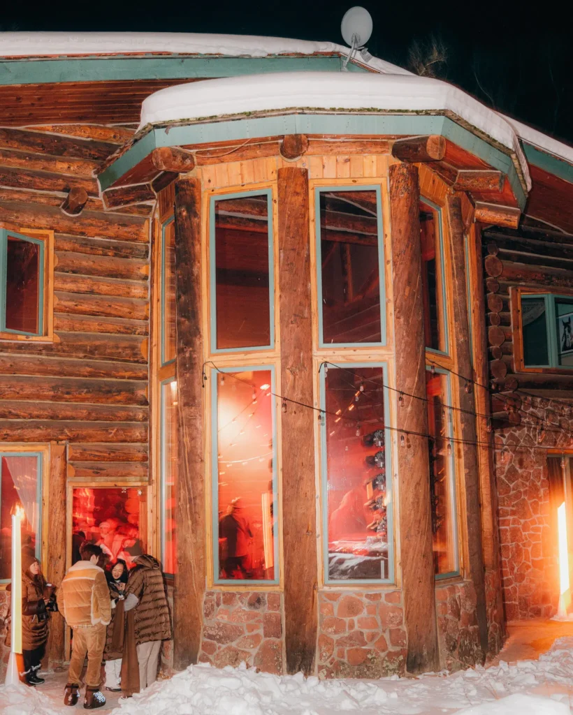 Celebrities and VIPs sat on cashmere blankets and warmed cushions on tiers of bleachers after disembarking. They gazed out on sculpted snow moguls backed by a grove of illuminated aspens. Before the show started, bartenders served chai tea, sake, and tequila.