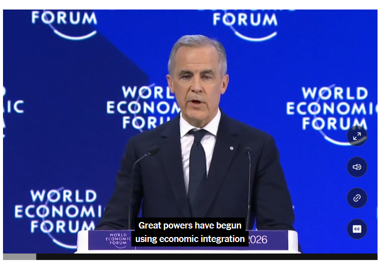 It highlighted the Canadian prime minister’s motives for flexing his rhetorical muscle on the Davos stage: Canada’s economic and, perhaps literal, survival.
