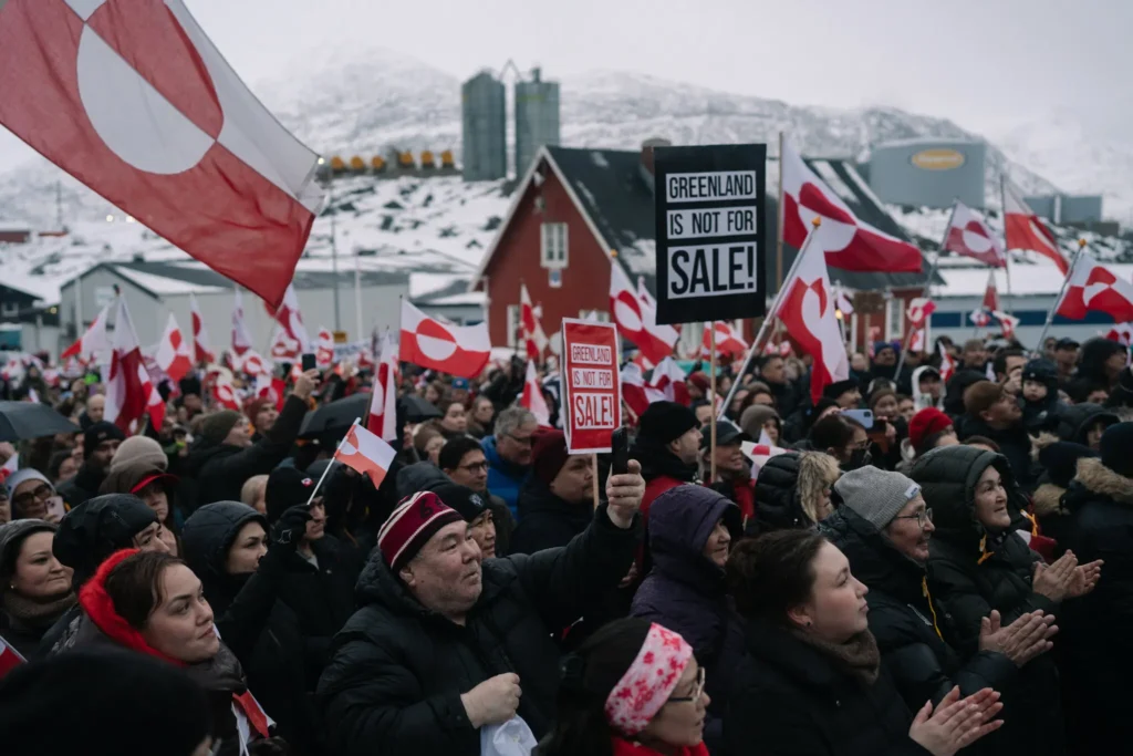 A protest last weekend in Nuuk, Greenland, opposing Mr. Trump’s efforts to gain control of the territory.Credit…Juliette Pavy for The New York Times